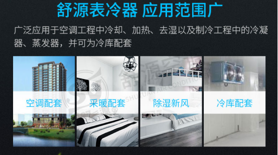 舒源空調(diào)(http://m.shhuk.com/)表冷器可以用來給制冷劑散熱,把壓縮機(jī)壓縮出的高溫高壓氣體冷凝成低溫低壓的液體,排出熱量。