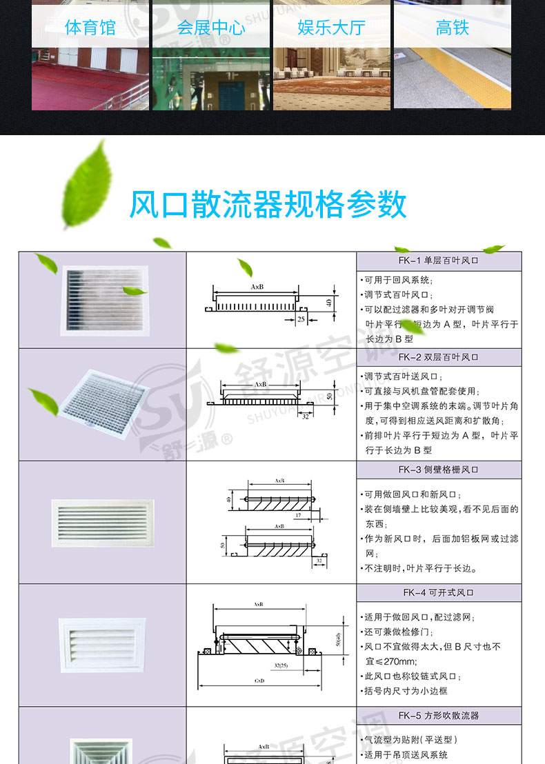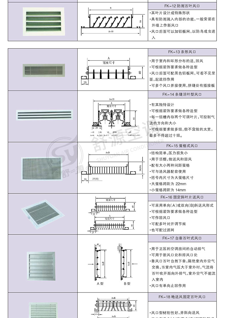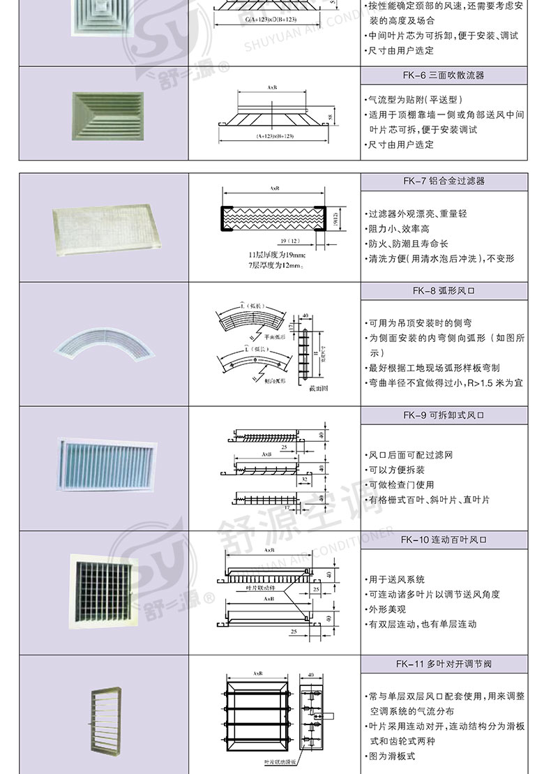 江蘇舒源空調(diào)制造有限公司生產(chǎn)“舒源”牌組合式空調(diào)機組、柜式空調(diào)機組、風機盤管和各種規(guī)格通風配件、自動控制柜、空氣凈化及防火閥消聲類產(chǎn)品,亦承接空調(diào)通風工程、凈化工程的設計、制作安裝業(yè)務,并可根據(jù)用戶需要設計制造非標產(chǎn)品。